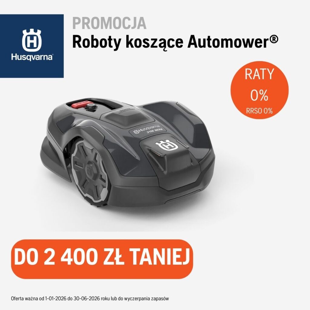 Kup wybrane roboty koszące w obniżonej cenie. Oferta ważna od 1-01 do 30-06-2026 roku,